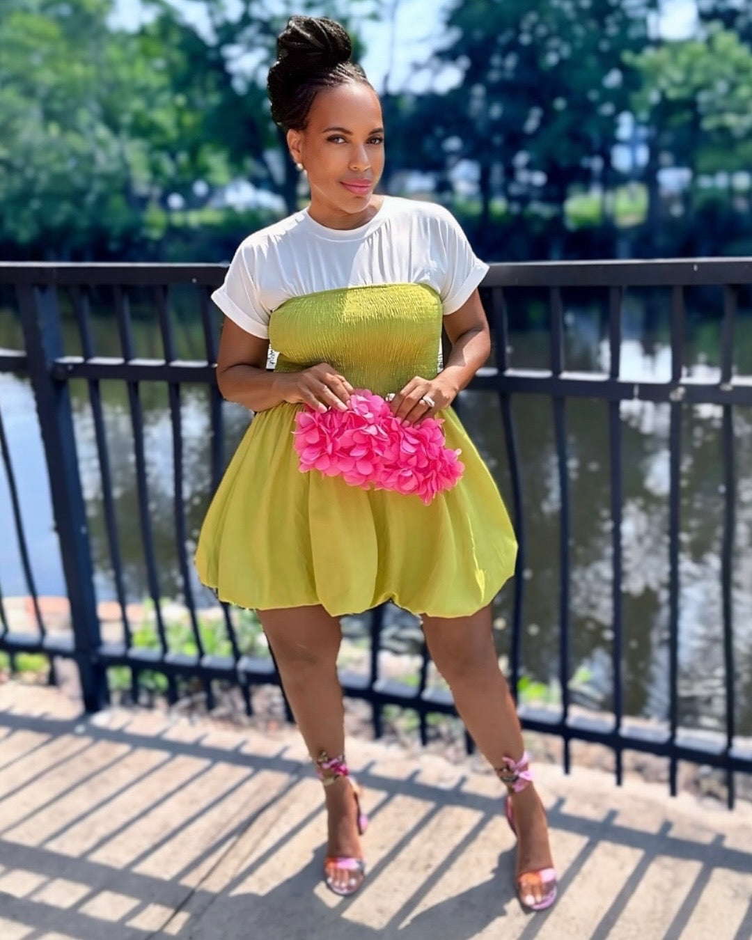 Chic and breezy, this smocked waist (stretchy) mini dress flatters with a cinched waist and flowy woven fabric. Perfect for warm days and easy outings. Style with a strappy heel or sneakers for casual days. Model wears a small